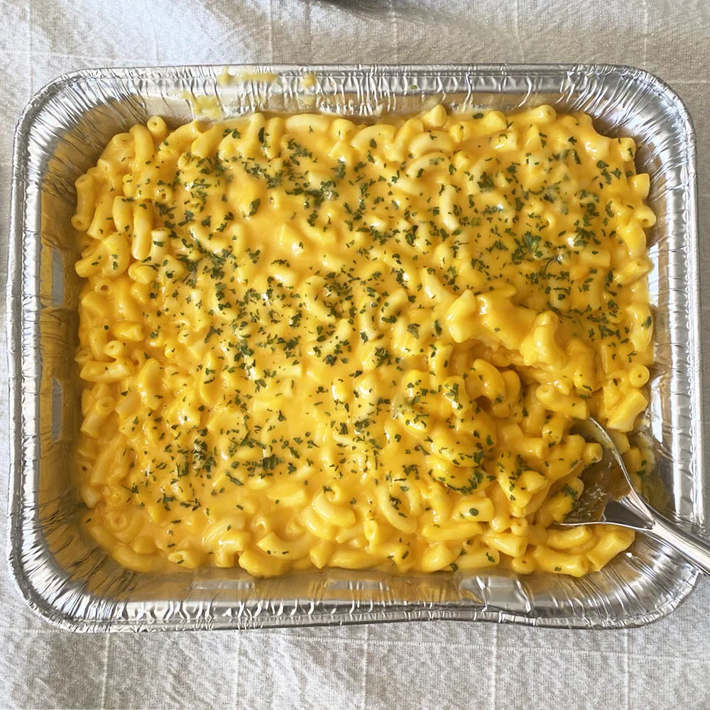Enjoy our Macaroni & Cheese Party Pan to add to your buffet. Available in a 4.75 Lb Pan. All you have to do is Heat & Serve!